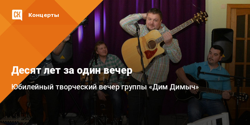 22 февраля в 18.00 в творческой гостиной "У Никитских ворот" состоится отчётный юбилейный творческий вечер группы «Дим Димыч» с концертной программой: "Десять лет за один вечер".
