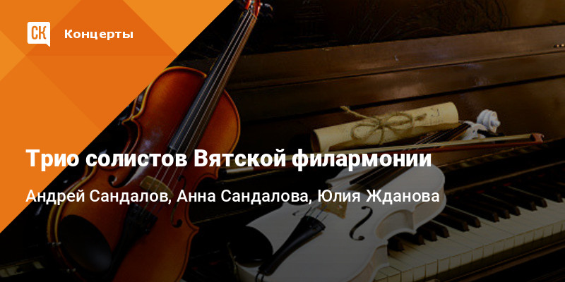 В исполнении солистов Вятской филармонии: Андрея Сандалова (фортепиано), Анны Сандаловой (скрипка), Юлии Ждановой (виолончель) – прозвучат Анданте до минор Э. Грига, «Думки» А. Дворжака, «Медленный вальс» и «Кукольный кэк-уок» К. Дебюсси, Этюд до минор и «Ноктюрн» А. Скрябина, а также другие произведения.