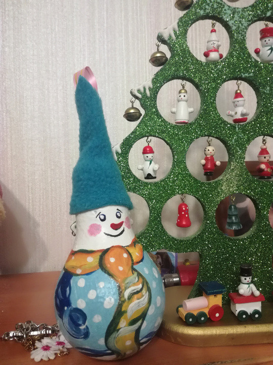 Мы взяли обычную лампочку и разукрасили в виде снеговика.