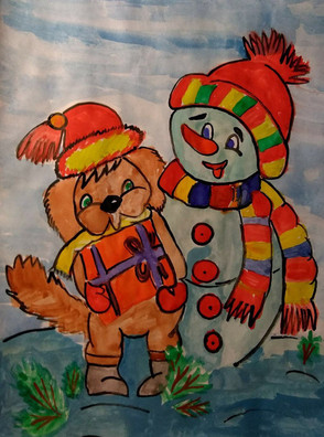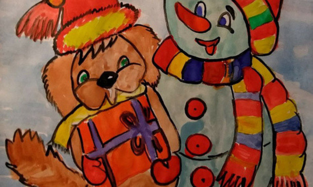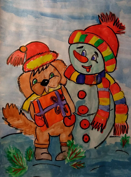 Веселый снеговик с собачкой поздравляют всех с Новым годом!