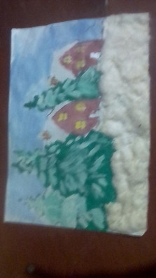 Рисунок на новогоднею тематику из ваты .