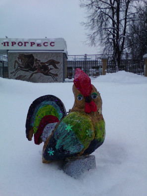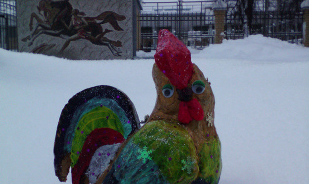 "Петушок". (Игрушка на ёлку). Петушок изготовлен из пенопласта, разрисован акриловыми красками, украшен пайетками и блестками.