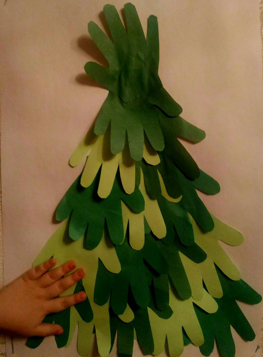 Всем привет! Меня зовут Олеженька. 7 января мне исполнится два года.Эта новогодняя елочка сделана из моих маленьких ладошек.