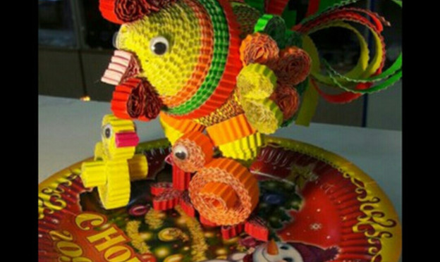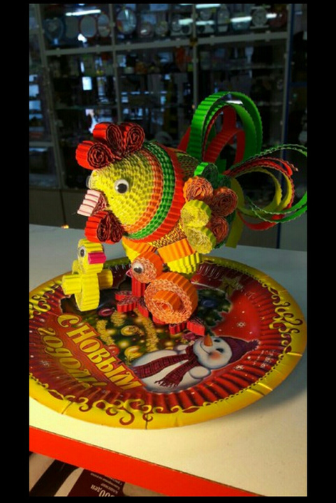 Поделка выполнена из гофрокартон в технике квиллинг.