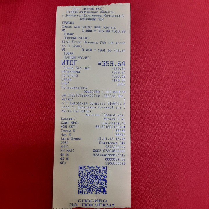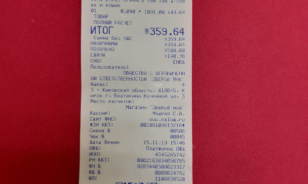 Сумма 359,64 "Зверье мое"