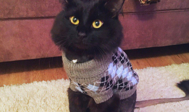 Это наш самый вредный, самый любопытный, самый энергичный и самый любимый кот-Венцеслав. На самом деле он очень пушистый и крупный -6 кг, это фото сделано сразу после стрижки и в новом подарке-в кардигане.