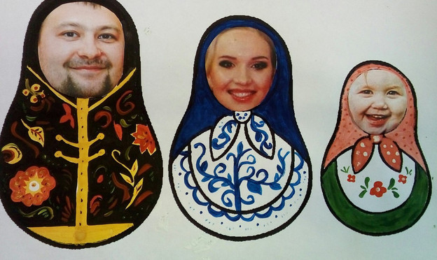 Совместное семейное воскресное творчество)Матрешка Папа в солидном черном костюме, матрешка Мама в струящемся платье под "гжель" и озорная дочка.