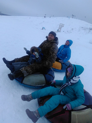 зимняя семейка на ватрушках