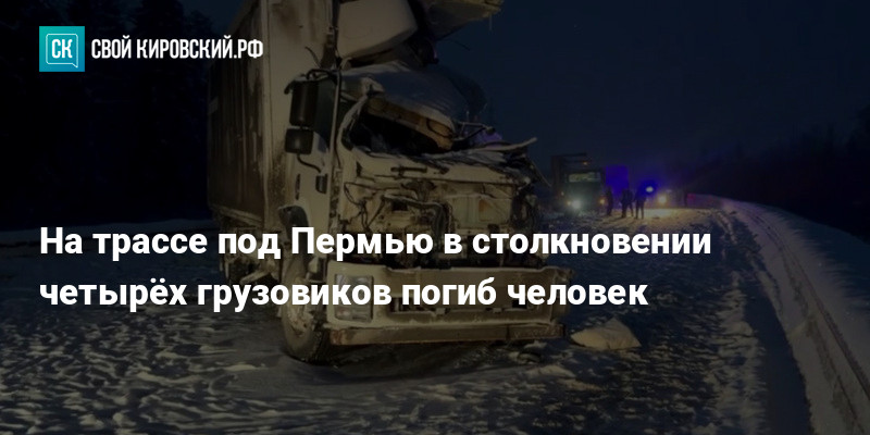 Утром 29 января на федеральной трассе «Кострома-Шарья-Киров-Пермь» произошло смертельное ДТП с участием четырёх грузовиков и легкового автомобиля. Один человек погиб, ещё один госпитализирован.