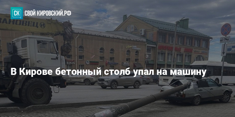 В Кирове бетонный столб упал на машину