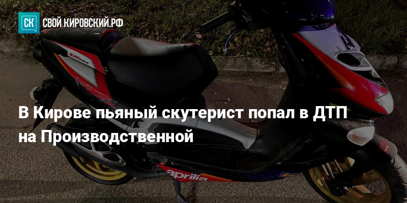 Ночью 7 октября на улице Производственной в Кирове произошло ДТП с участием нетрезвого водителя скутера. 30-летний мужчина, управлявший скутером «Априлия», не справился с управлением и перевернулся.