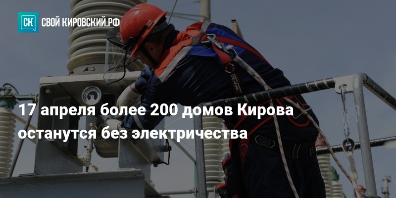 В среду, 17 апреля, в десятках домов Кирова не будет света, сообщает администрация города со ссылкой на «Горэлектросеть». Компания проведёт плановые отключения электричества.