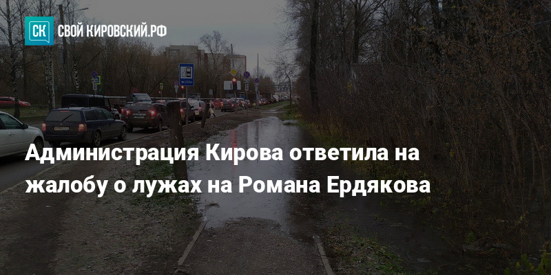 Житель Кирова в соцсетях обратился в городскую администрацию с просьбой решить проблему постоянных луж на тротуаре в районе улицы Романа Ердякова и Сельскохозяйственного проезда. Он указал, что тротуары находятся ниже уровня земли и постоянно подтапливаются, и попросил сделать простые водоотводные канавы.