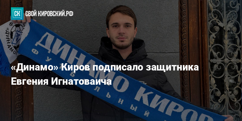 Футбольный клуб «Динамо» Киров объявил о подписании контракта с защитником Евгением Игнатовичем. Родившийся 9 мая 2000 года игрок пришёл из клуба «Знамя Труда».