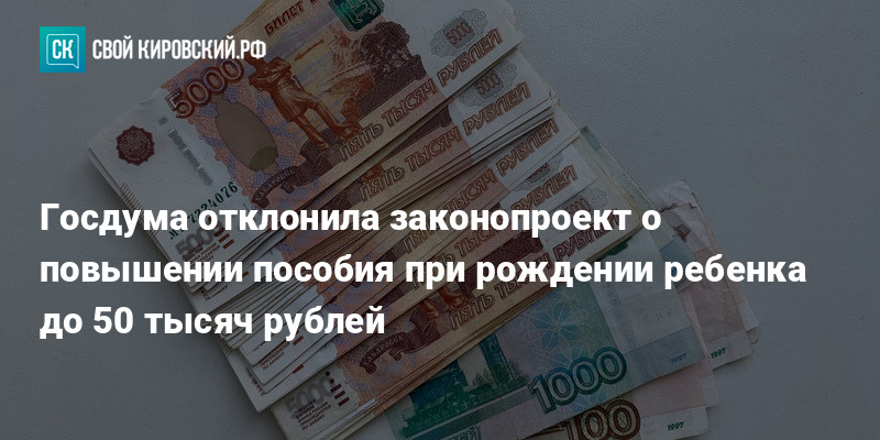 - Госдума отклонила законопроект о повышении пособия при рождении ребенка до 50 тысяч рублей