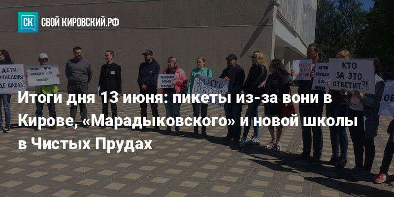 В нашем ежедневном дайджесте рассказываем о впечатлениях артистов от выступления в Кирове в День города, планах запустить новые автобусные маршруты, а также об акциях протеста: из-за неприятного запаха в городе, переработки опасных отходов в «Марадыковском» и возможной задержки в открытии строящейся школы в Чистых Прудах.