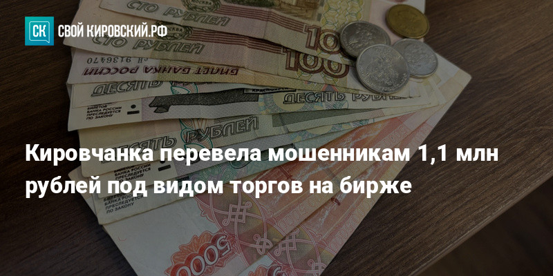 Поскольку счёт был рублёвым, а торги якобы велись в валюте, деньги требовалось переводить на счета третьих лиц. Женщина перевела 52 тысячи рублей, и на её электронном счёте отобразилась «прибыль». Когда она захотела вывести деньги, её связали с «техподдержкой биржи». Там сообщили, что сумма небольшая и нужно «уменьшить кредитное плечо», внеся ещё деньги. Кировчанка оформила кредит и заняла у знакомой, переведя в общей сложности 1,1 миллиона рублей. Ей обещали вернуть средства через три дня.