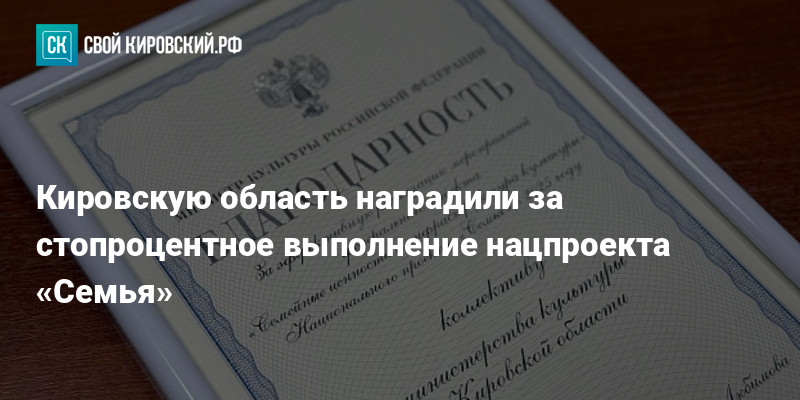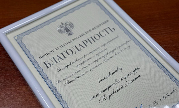 Регион получил благодарность от министра культуры РФ Ольги Любимовой. Награду вручили на заседании координационного совета в Москве. Кировскую область представлял министр культуры Даниил Дворцов.