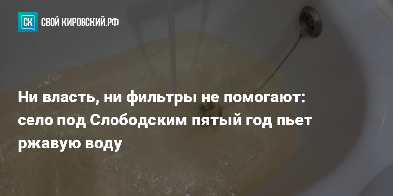 Около тысячи жителей села Ильинского в Слободском районе больше пяти лет пьют воду, непригодную для питья. В ней превышены показатели по цветности, мутности и железу. Люди либо покупают воду, либо возят с родника, либо пользуются ржавой из-под крана.