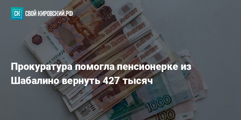 - Прокуратура помогла пенсионерке из Шабалино вернуть 427 тысяч