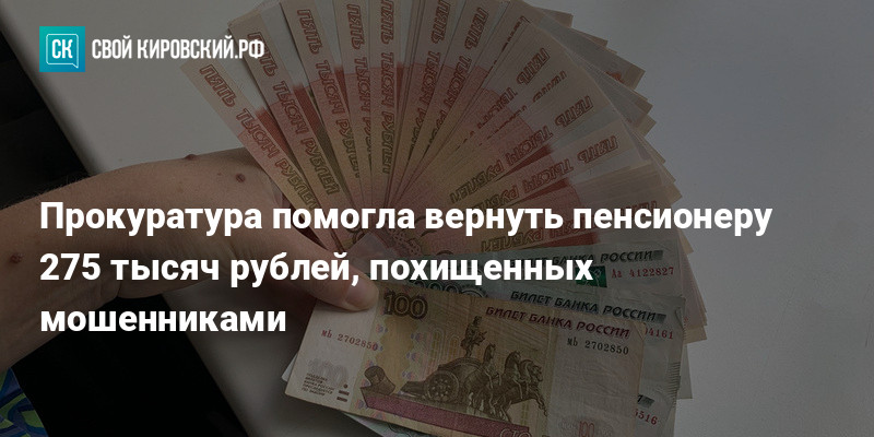 В Санчурском районе прокуратура добилась через суд возврата 275 тысяч рублей, украденных у 63-летнего мужчины при дистанционном мошенничестве.