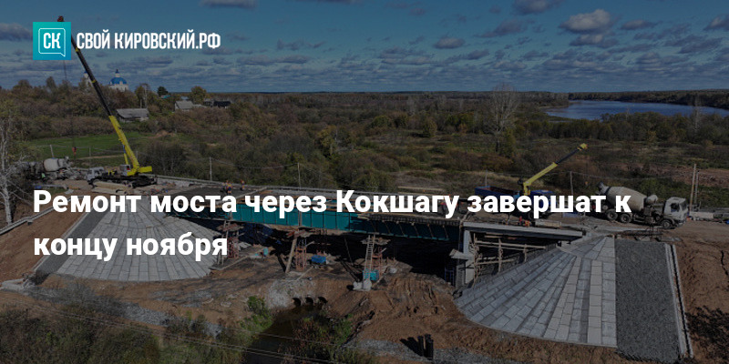 В Кировской области капитальный ремонт моста через реку Кокшага выполнен уже на 75%. Работы ведутся в рамках нацпроекта «Инфраструктура для жизни» и должны быть полностью завершены до 30 ноября.