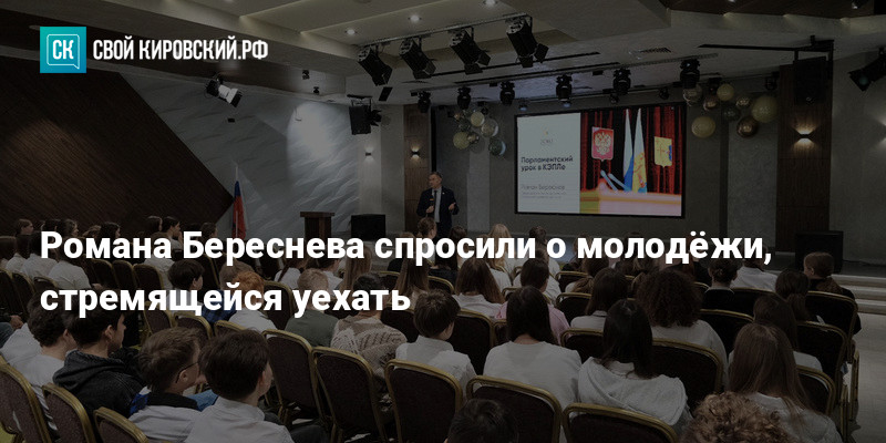 Председатель Заксобрания Кировской области Роман Береснев провел парламентский урок для учащихся Кировского экономико-правового лицея. Один из вопросов, который поступил от школьников, касался причин стремления молодёжи уехать из региона.