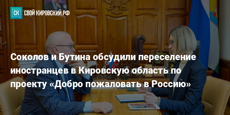 Губернатор Кировской области Александр Соколов провёл встречу с депутатом Государственной Думы Марией Бутиной. Разговор шёл о запуске проекта «Добро пожаловать в Россию».