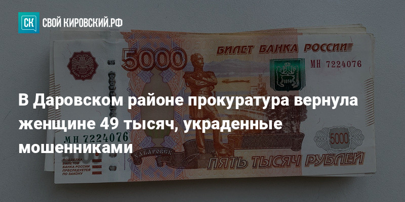 - В Даровском районе прокуратура вернула женщине 49 тысяч, украденные мошенниками