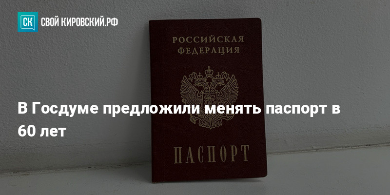 В Госдуме предложили менять внутренний паспорт в 60 лет. Депутат Игорь Антропенко («Единая Россия») в беседе с РИА Новости заявил, что с ростом средней продолжительности жизни до 74,2 лет внешность человека сильно меняется, и это создаёт трудности при проверке личности.