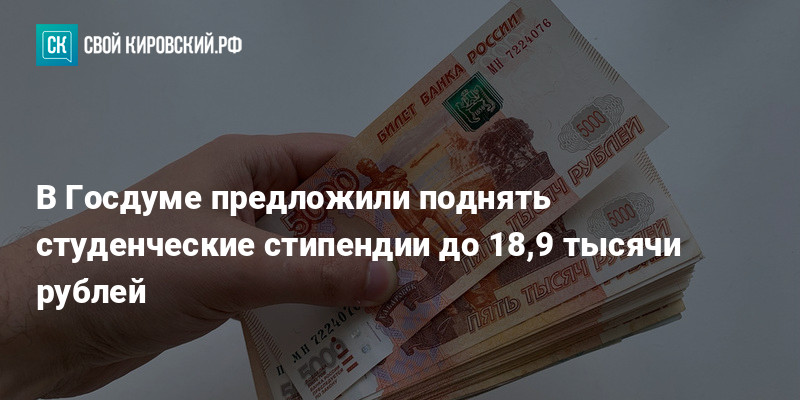 Депутаты Госдумы от фракции «Справедливая Россия» внесут законопроект об увеличении минимальной стипендии для студентов-очников. Автор инициативы Сергей Миронов предлагает установить её на уровне прожиточного минимума по России, который сейчас превышает 18 900 рублей в месяц.