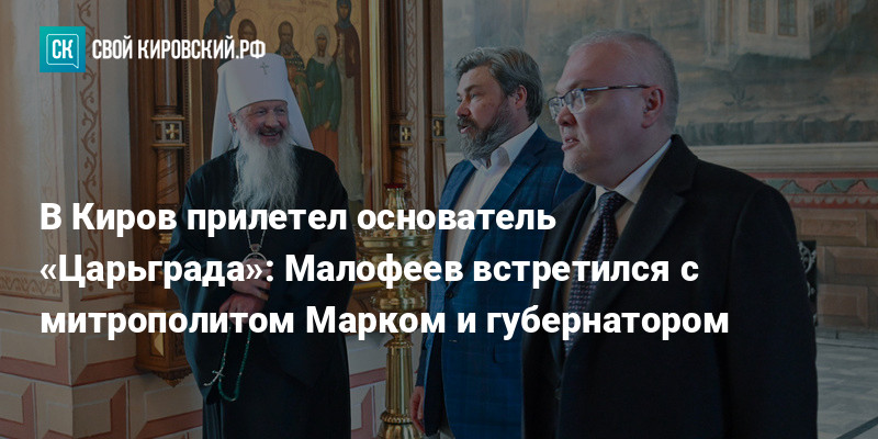 1 апреля общественный деятель и меценат Константин Малофеев посетил Вятскую епархию. Он побывал в Трифоновом монастыре и на стройке Феодоровской церкви, а также встретился с митрополитом Вятским и Слободским Марком.