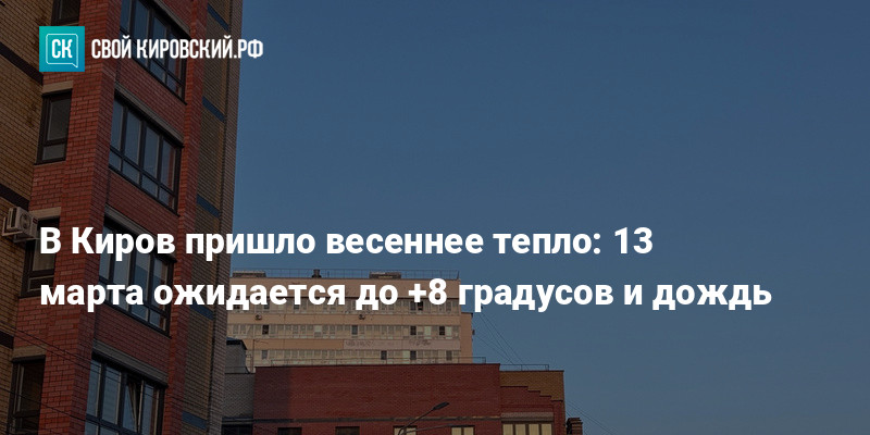 В четверг, 13 марта, в Кирове потеплеет. По прогнозам синоптиков, днем воздух прогреется от 3 до 8 градусов выше нуля.