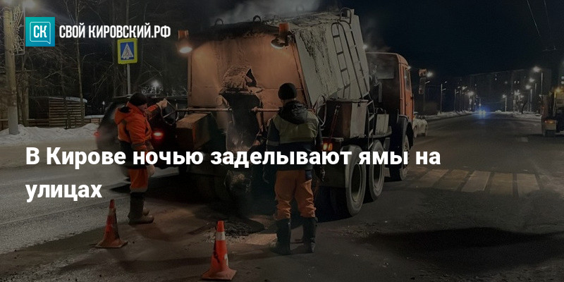 Работают по ночам, чтобы не мешать машинам. За смену два звена используют 25 тонн материала. На ближайшую ночь в планах улицы Энтузиастов, Производственная, Луганская, а также дорога Киров — Русское.