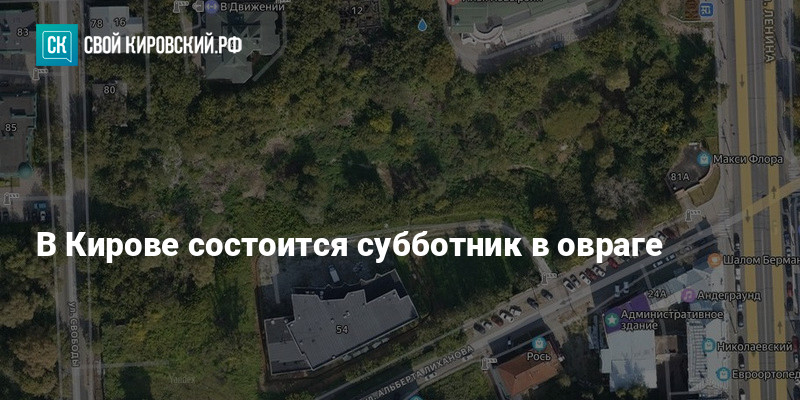 В Кирове состоится городской субботник в овраге Засора между улицами Ленина, Свободы, Герцена и Альберта Лиханова. Мероприятие пройдёт 11 октября в 11:00.