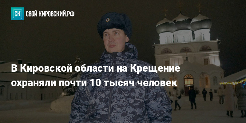 В ночь на Крещение сотрудники Росгвардии, полиции, МЧС, а также народные дружинники и казаки обеспечивали порядок и безопасность во время праздничных богослужений и купаний. Мероприятия прошли на 92 религиозных объектах и купелях в 63 населённых пунктах Кировской области.