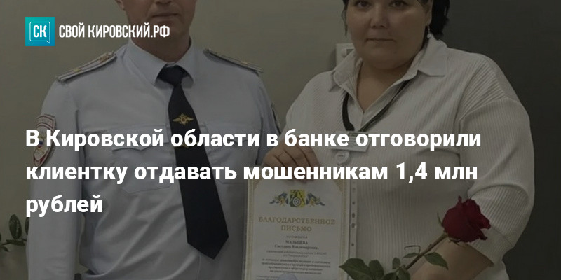 Выяснилось, что накануне женщине звонили мошенники, представились сотрудниками правоохранительных органов и требовали снять деньги для «защиты» сбережений. Благодаря бдительности Светланы пожилая клиентка сохранила средства. Возбуждено уголовное дело. Начальник отделения полиции вручил Мальцевой благодарность.