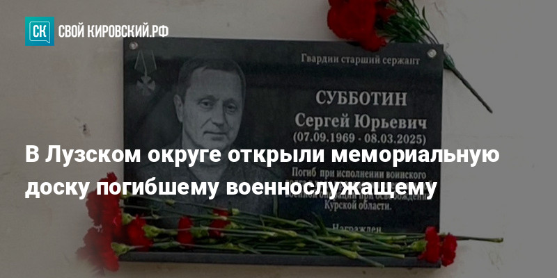 В Лузском округе состоялась церемония открытия мемориальной доски в честь гвардии старшего сержанта Сергея Субботина, погибшего в ходе специальной военной операции. В мероприятии приняли участие глава округа Людмила Беляева и военный комиссар.