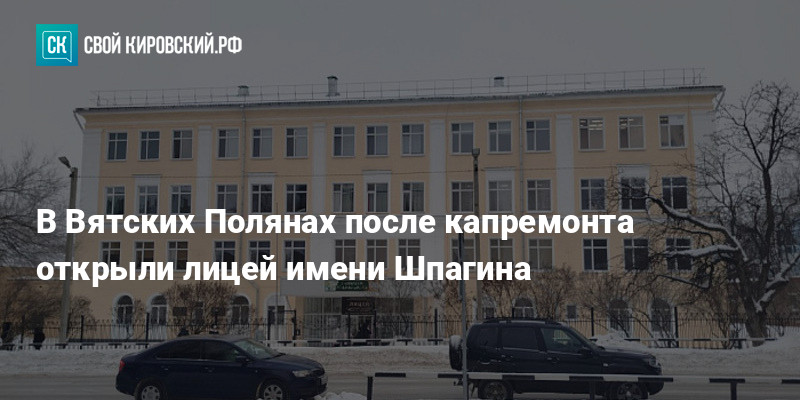 В Вятских Полянах завершился капитальный ремонт лицея с кадетскими классами имени конструктора Георгия Шпагина. Работы провели в рамках национального проекта «Молодежь и дети».