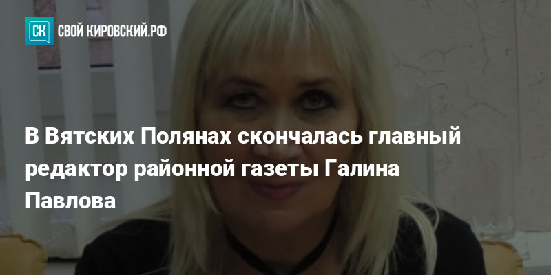 В Кировской области умерла главный редактор газеты «Вятско-Полянская правда» Галина Павлова. Об этом сообщили в редакции издания.