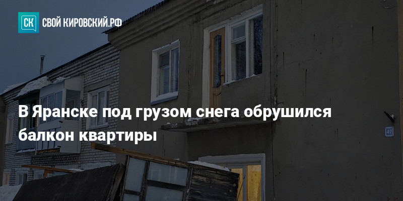 В городе Яранске Кировской области из-за скопления снега обрушился балкон многоквартирного жилого дома. ЧП произошло в доме № 47 на улице Мицкевича.