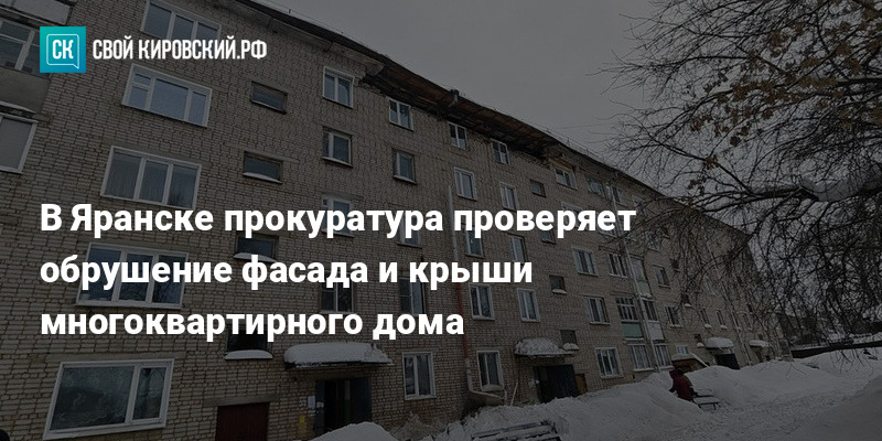 В Яранске на улице Гоголя обрушились элементы фасада и крыши многоквартирного дома. ЧП случилось днём 15 февраля, никто не пострадал. Жильцов эвакуировали — часть уехала к родственникам, нескольких разместили в общежитии техникума. Дом охраняют полицейские.