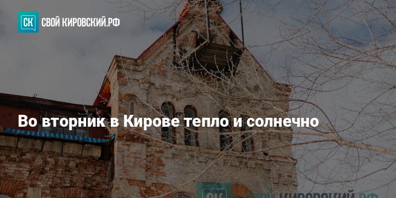 По данным Яндекс.Погода, во вторник в Кирове ожидается солнечный и тёплый день.