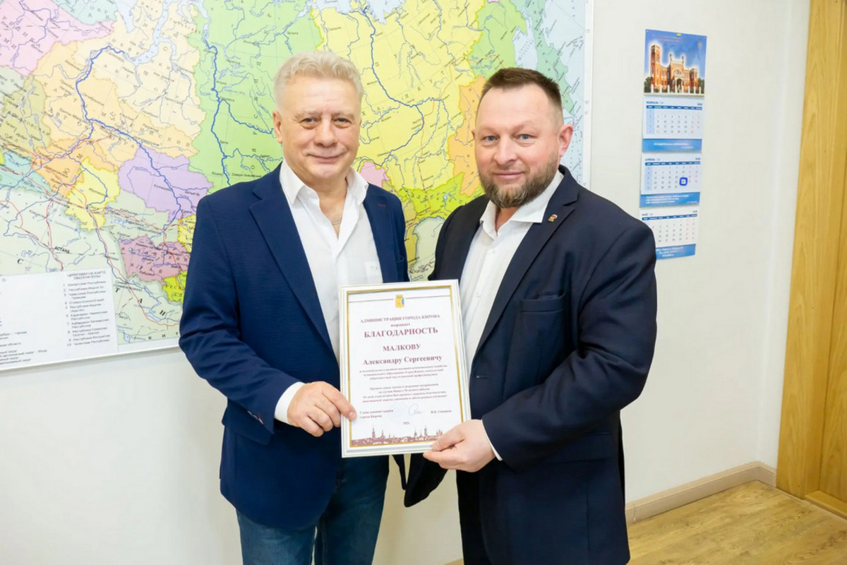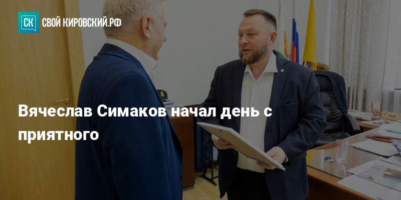 Вячеслав Симаков вручил бывшему сотруднику администрации Кирова Александру Малкову благодарность. Об этом он рассказал в своём канале в мессенджере «Макс».