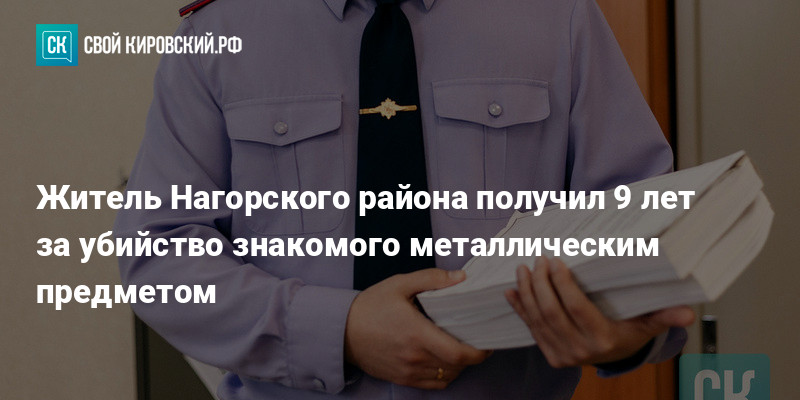 - Житель Нагорского района получил 9 лет за убийство знакомого металлическим предметом