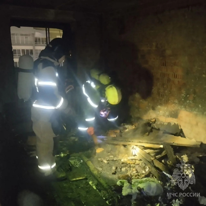 По данным пожарных, полностью выгорела одна комната, стены, потолок и имущество в квартире закопчены. Возгорание началось в нежилой комнате, которая была сильно захламлена. Причина устанавливается. На месте работают дознаватели и эксперты пожарной лаборатории.